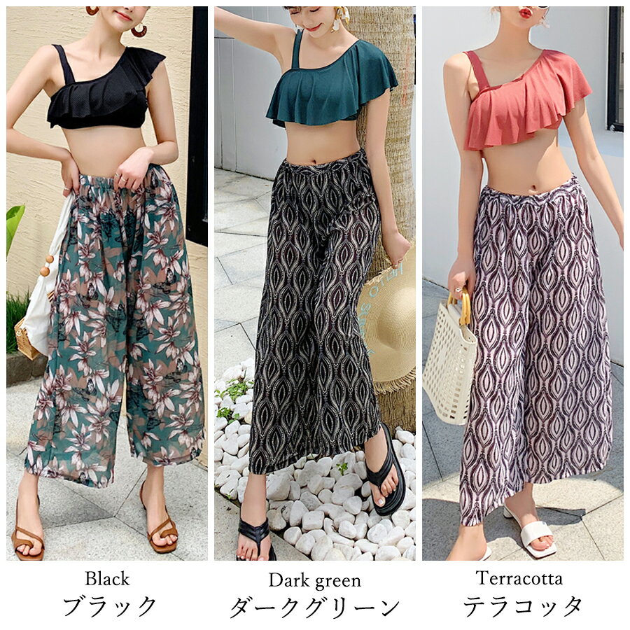 【スーパーセール限定価格】2022新作水着 水着 レディース ビキニ 3点セット パンツ スカート パレオ ラッシュガード 体型カバー パッド付き ワイヤー入り セパレート フリル レース 花柄 ブラック グリーン ママ 水着 大きいサイズ 20代 30代 40代送料無料 cicibella