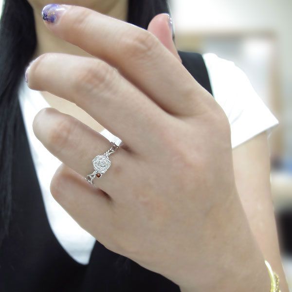 【10%OFF】プラチナ 薔薇 指輪 ガーネットリング フラワーモチーフ リング