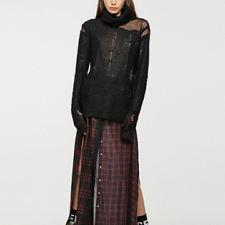 ★DIESEL ディーゼル レディース★シースルーメッシュ切替 モヘア混 ウール混 クラッシュダメージ加工 タートルネック 長袖ニットセーター【M-CLASSH】【サイズS〜L】【ブラック】die-l-t-b8-171 《メーカー希望小売価格46,200円》