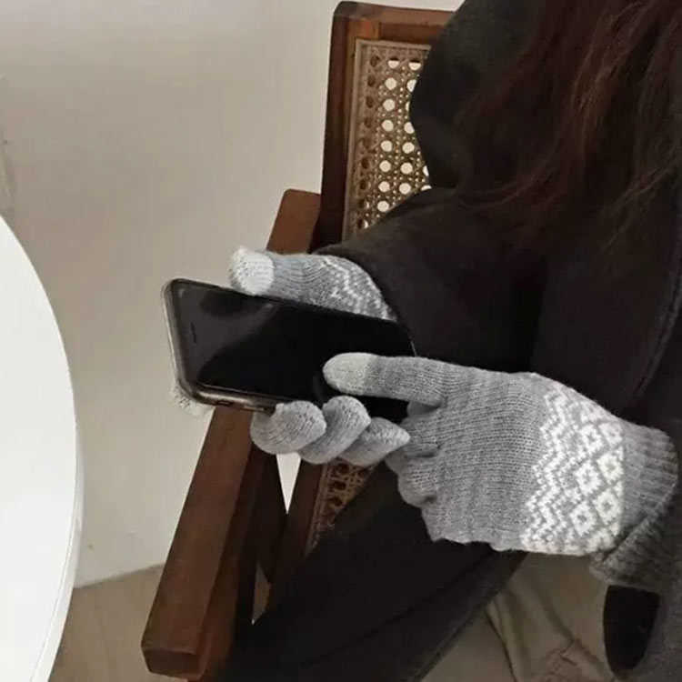親指、人差し指に導電糸を編み込むことによって、手袋をつけたままスマートフォンやタブレットの操作が可能です。