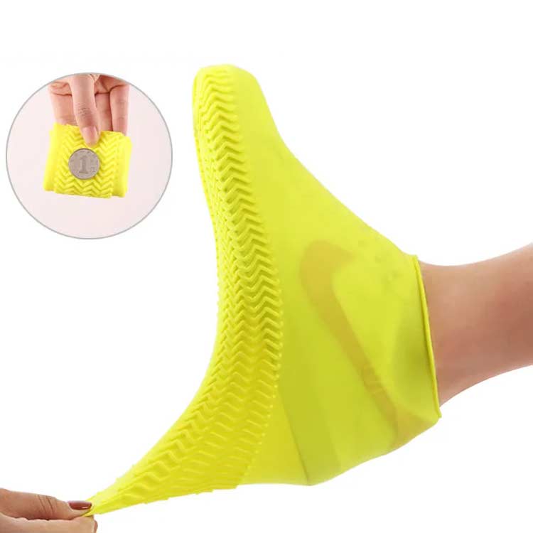 伸縮性に優れたシリコン素材なので、靴にピッタリとフィットすることで雨の侵入を防ぎます。